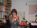 | みどり(せんせー)の感想♪ | 今回は、今までとやり方変えて、司会を私がやりました。 演奏の前に生徒さんにインタビューしたり、自己紹介をしていただいたり、 また、演奏の後で、私が一言コメントをしたり・・・・。 そのせいかどうかはわかりませんが、 今回は、本当に出席した方々全員に、音楽のすばらしさが伝わったと自負しております。 会では、感動のあまり思わず涙する生徒さん、笑いをとってみんなの笑顔を引き出す生徒さん、 そして、私が行っているボランティア活動「美里交流サロン「五えん」の会で知り合ったTさん=そば打ち名人による、そば打ちの実演&試食会、 11月から教室に入門されたすてきなおじさま=手品名人による、爆笑手品などなど、 とてもいい会となりました。 私は、撮ったビデオを何度も見ては、笑ったり泣いたり・・・・いっぱいしました。 私はとてもいい生徒さんたちに囲まれて、すごく幸せです。 ありがとうございます。 さて、来年は2年に1度の発表会の年。 このノリで、楽しく音楽を共有できるよう、がんばりたいな♪ |