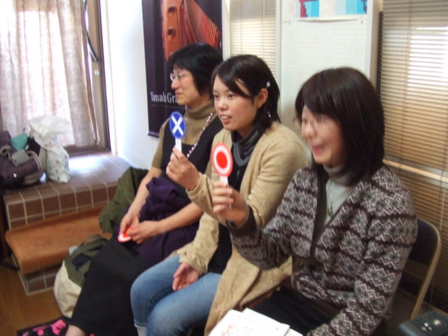 | ♪その他 | ★一人1曲以上、演奏してください。 ただし、「人の演奏を聴く事も勉強になり励みになる」「生徒同士の親睦」という、 本来のこのコンサートの趣旨から、聴くだけ参加も大歓迎しま〜す♪ ★演奏、クイズやゲームなど終了後は流れ解散。 ご都合のよい方は、その後食事会等を設けますので、ご自由にご参加ください。 ★お手伝いスタッフをやってくれる方は、お申し出お願いします。 (こちらからお願いするかもしれません、よろしくお願いします。) ★当日は自己紹介をしてもらいます。 |