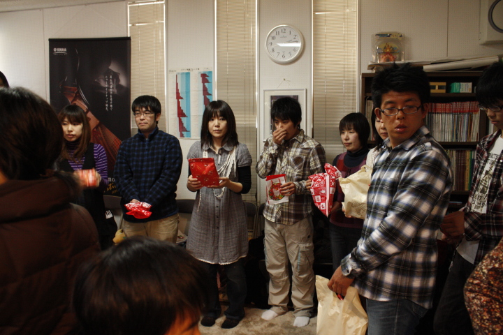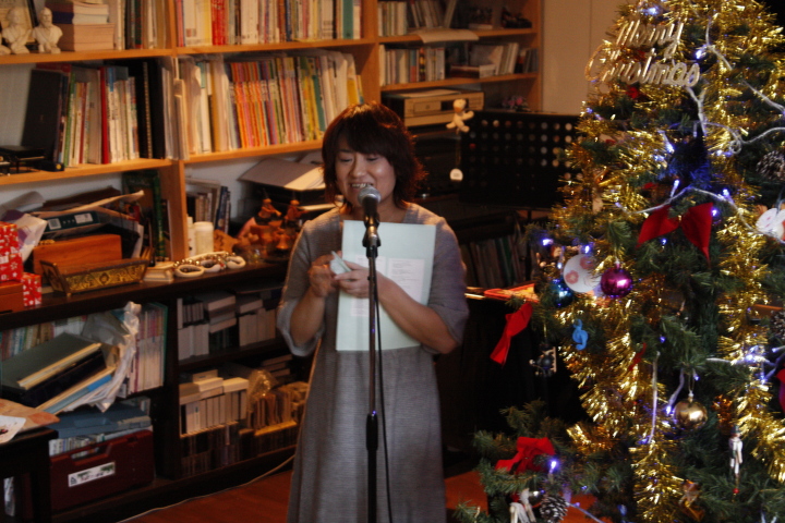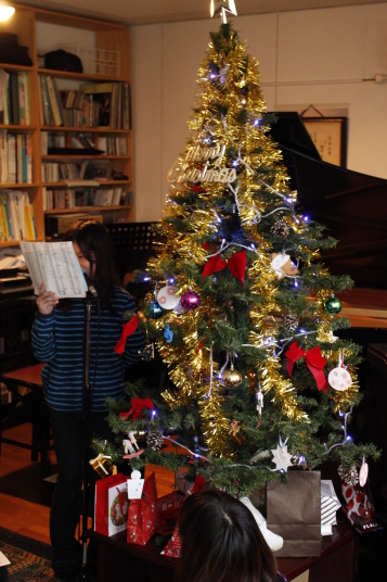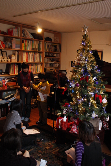 | みどり(せんせー)の感想♪ | 今回は、初めて参加する生徒が6名いました。 うち一人は残念ながら体調不良とのことで欠席でしたが、 他5名の生徒も、参加2回目以降の生徒もみんな、とても楽しめたようでよかったです。 多少、お昼ごはんの準備の都合でプログラム順序を変更しましたが、 順調に進み、予定よりも2時間も早く、午後2時ごろに予定を全部終了・・・・! 特に、クイズ大会は、曲当てクイズをやりました。 TVのCMソングやらコンビニの扉の開くときの音など、超・マニアックな問題もありで、 とても盛り上がったと思います。 予定していたプログラムを全て終えたつもりで、時間を見てびっくり! まだ午後2時だったので、また今年もなんか忘れてるような気もしたけど、 今回は最初にみんなに、昨年のベルを忘れた一件で 私がどれだけ悲しい思いをしたかを話して置いたので、 みんなもいろいろ指摘してくれたし、最後にも 今年はちゃんと全部やったよね?と、確認して、無事に終わりました。よかった〜♪ 今年のクリスマス会で私が特に嬉しかったことは、 出産&育児のためレッスン休止中のminaちゃん、トロンボーン姉さんが、 赤ちゃんを連れて、聴くだけ参加をしてくれたことと、 仕事の都合でレッスン休止中のりゅうくんが、例年のようにビデオ撮影担当で、 わざわざ駆けつけてくれたことです。 ありがとうございました〜♪ さて、あとは、次々に届くであろう、みんなの作文が楽しみで〜す♪☆〜(σ。σ)♪ |