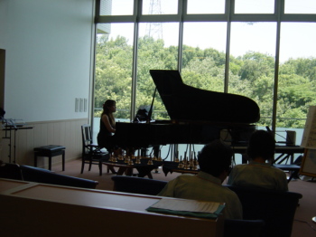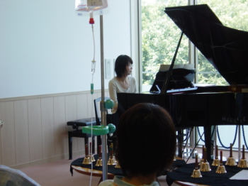今回は、美里交流館のベルふぁみりぃの方々と一緒にミュージックベルでの演奏をお楽しみいただきたいと思います。(コメント:Saint Cecilia/みどり) 7.うみ・・・・この曲も夏の曲では絶対にはずせない曲だと思います。 今回は、美里交流館のベルふぁみりぃの方々と、お聴きくださる方々=全員でミュージックベルで 一緒に音楽を楽しみたいと思います。(コメント:Saint Cecilia/みどり) 8.ミッキーマウス・マーチ・・・・よく効きなれた曲ですが、はじめての挑戦です。 今日は大好きなリーちゃんとの連弾です。 行進曲なので楽しく弾きますので、皆さんも楽しんで聞いてください。(コメント:由桐) みなさんよくご存知のディズニーの曲です。 私のイメージは、ディズニーのいろんなキャラクターがそれぞれ楽器を持ちパレードをしながら リーダーのミッキーマウスの紹介をして、みんなが胸を張って行進してる感じです。 今回演奏するピアノアレンジもとっても楽しく軽やかなアレンジです。 今回は、由桐ちゃんと連弾します。年齢は、私の方がだいぶ年上だけど、ピアノは由桐ちゃんが大先輩!。 由桐ちゃんが連弾してくれると先生から聞いてとてもうれしかったよ♪。由桐ちゃんありがとう。 由桐ちゃんの胸を借りて、元気に楽しく演奏したいです。(コメント:りぃ) 9.アヴェ・マリア・・・・この曲は、CMソングなどでも流れていますが、とても気持ちのいい曲です。 そして、イエス・キリストの母の名前です。 きれいなメロディでとても好きです。意味は調べたけど、私にはよくわからなかったです・・・・・。 もし間違えても、とまらずに弾きたいです。(コメント:由桐) 10.となりのトトロ・・・・「となりのトトロ」は宮崎駿監督、スタジオジブリ制作により1988年公開されたアニメ映画です。 日本の自然の美しさと子供にしか見えない不思議な世界を描いた夢あふれる作品です。 子供のころから何度も観た映画だけど、どれだけ年齢を重ねても素直に楽しめる映画です。 童心に帰ったつもりで楽しく演奏します。(コメント:カスミン) 私が楽しく見ていたトトロを、今では子どもたちが喜んで見ています。 不思議な世界に繰り広げられる親子の愛情や自然への尊敬のまなざしは今見ても新鮮な感情を私の中に呼び起こしてくれます。 先日、改めてこの映画を子どもたちと見ていたときに、昔見たころと今では目線が変わっているのに気づき面白いなと感じました。 私はおかあさんが長女のサツキのことを 「あの子は我慢強いから心配なのよ」 と語るシーンがとても好きです。私もあんな風にしっかり子どもを見つめられる母親になりたいと思います。 トトロの楽しい世界観を表現できるように明るく軽やかに弾きたいと思います。(コメント:mina) 11.あの日の川・・・・私の大好きな映画、『千と千尋の神隠し』に使われた久石 譲さんの曲です。 映画を観ていて、不思議な世界へ通じるトンネルをあの家族と一緒に抜けたときから私はその世界の中に入り込んでしまいました。 「あの日の川」は、千尋がハクの優しさに触れて思わず泣いてしまうシーンで流れていて、千尋の心の内だと思います。 透明感のあるゆったりとした、まさに川の流れのように癒される演奏でがんばります。(コメント:カスミン) 12.めぐり逢い・・・・私の大好きなアンドレ・ギャニオンの代表的な曲です。 私のテーマソングとして毎回弾きます。 ※ストリングス(E・ピアノによる)をバックに入れての演奏です。 この曲は1996年4月オンエアされた柴門ふみ原作のTVドラマ「Age'35 恋しくて」でBGMとして使われていましたが、 実はそれよりも前に、1995年10月〜12月に放送されたドラマ「恋人よ」や、様々なドキュメンタリー番組のBGMとしても使われています。 しかし、私が初めてこの曲と”めぐり逢った”のは、確か、1992年の冬だったと思います。それからずっと弾き続けています。 気に入った曲は、どれだけ弾いても、何年経っても、絶対に飽きないし、 そのときそのときで、違う、いろんな「めぐり逢い」を心の中に思い描きながら、弾くと、とても気持ちがいいです。 これからもずっと、「めぐり逢えた」人々に対して、 『ありがとう、あなたにめぐり逢えて私はとても幸せです』 という「感謝の気持ち」をこめて弾き続けていこうと思います。 この曲については、こちらもご覧ください。(コメント:Saint Cecilia/みどり) 13.生きてこそ・・・・この曲の歌詞は、こう始まります。 ママ 私が生まれた日の空は どんな色? パパ 私が生まれた日の気持ちはどうだった? 生きる力をもらえるって感じの歌で、まさに病院で演奏するにピッタリだと思います。 これがテレビアニメの主題歌だということも、子供たちに自然に気持ちが伝わるような気がするので、 とってもいいなーと思います。(コメント:Saint Cecilia/みどり)