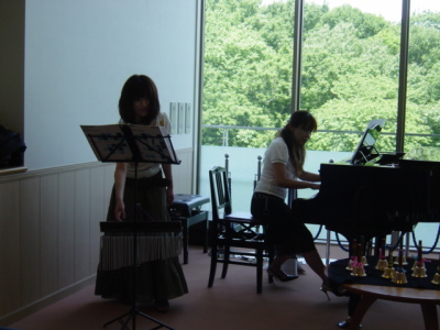 今回は、りぃちゃん、カスミンちゃん、我が息子taka(病院デビュー)&娘ゆうみも参加します♪ 曲目解説 1.みどれみ~優海・・・・オリジナル曲。「みどれみ~」は、このサイトのトップで流れるウチのテーマ曲。 「さあ、今から楽しく音楽を始めましょう♪」ってイメージで作ったので、コンサートの始まりにはちょうどいいかも? と思います。 そのあと、「レインスティック」の効果音に続けて、「優海」に入ります。 「優しい海」について・・・・私は「海」が大好きなので、実は、もう一つ海の曲「冬の海」という曲も作ったのですが、 そちらの曲は、中国の楽器=胡弓の曲のため、あえて「の」を除いて「冬海」にしたため、 それに合わせて「優しい海」もひらがなを除いて「優海」にしました。 それからこの曲名には、もう一つの意味があります。 うちの娘の名前が「優実(ゆうみ)」なので、それもひっかけてあるんです。 優しい子に育つようにとの願いも込めてつけた名前。 だから、この曲を聴いてくださった方々の心にも、優しい気持ちがいっぱいになればいいなぁ・・・・ という思いを込めています。(コメント:Saint Cecilia/みどり) 2.ミュゼット・・・・「音楽の父」バッハの作曲した曲です。 ミュゼットとは17世紀から18世紀にかけてフランスの宮廷で大流行した小さなバグパイプのことですが、 バグパイプとは違い、空気を革袋に送る際、奏者の息を口を使って送る代わりに、 ベルトによって腰に取りつけられた「ふいご」を使って送風しました。 このことで演奏する姿が優雅に見えるそうです。 手の弾むようなフレーズと左手で刻むリズム、そして時々織り込まれているユニゾンが印象的な曲なので、 両手のバランスが崩れないように注意して弾きたいです。(コメント:カスミン) 3.追憶・・・・ ご存じの方も多いと思いますが、この曲は1973年に公開された映画「追憶」のテーマソングです。 映画では20年にわたる男女の愛の推移が描かれていて、 その中で過去の思い出をなぞっていくシーンに何度か使用されています。 「追憶」という曲名の通り最初はしっとりとした感じで始まりサビの盛り上がりを経て静かに終わりますが、 その中で気持ちの盛り上がりを上手く表現できるように弾きたいです。(コメント:カスミン) 4.もしもピアノが弾けたなら・・・・ TVドラマ『池中玄太80キロ』第2シリーズの挿入歌として作られ、主演の西田敏行さんが歌い大ヒットした曲です。 あふれる想いを、ピアノでなら伝えられそうなのに…叶わぬ想い、切ない気持ちがいっぱいの曲だと思います。 歌詞にもあるように、人を愛した喜びや 心が通わぬ悲しみや おさえきれない情熱が、ピアノで伝えられたらどんなに素敵だろう…。と私も思います。 私がもっと上手に弾けたなら、代わりに伝えてあげられるのに…と。楽しみながらピアノと向き合い 指先に伝えたい気持ちをいっぱい込めて演奏できるようにがんばっていきたいです。 カスミンちゃんと初めての4手連弾です。心を合わせて演奏したいと思います。(コメント:りぃ) 西田敏行さん主演の日本テレビ系ドラマ「池中弦太80キロ」主題歌です。 「ピアノが弾けたらいいなぁ」と思う心が、やさしいメロディーで表現された素敵な曲です。 この曲の楽譜を初めて見た時、自分がピアノを始めたばかりの頃の気持ちがよみがえってきました。 あの頃の気持ちを思いだして昔懐かしいぬくもり、やさしさを感じながら演奏したいと思います。 この曲の歌詞のように、誰かのためにピアノを弾く・・・いつの日かそんなことが実現できたらいいなぁと思います。 (コメント:カスミン) 5.テネシーワルツ・・・・パティ・ペイジさんのカバーや日本では和田壽三が訳詞したものを江利チエミさんが歌っていたり、 たくさんの方にカバーされている私も大好きなポピュラーソングです。 歌詞の和訳は、恋人とテネシー・ワルツを踊っていたとき、旧友と出会い私は彼女に恋人を紹介した。 そして彼女は 彼と踊っているうちに彼の心を奪ってしまった。 あのテネシー・ワルツとあの夜を 私は忘れない。どれほど大きなものを 失ってしまったことか。 そう 大切な彼を失ってしまった…。美しいテネシー・ワルツが流れてた夜…。という内容です。 とても悲しい歌詞ですが、人を想うせつなさを感じさせる大人っぽいメロディーと合わさって 心に沁みていくような曲だと思います。 カスミンちゃんと初めての4手連弾です。大人の雰囲気をふたりで出せたらいいなぁと思います。(コメント:りぃ) 1948年にレッド・スチュワートとピー・ウィー・キングによって作られました。 江利チエミさんが歌うテネシーワルツは、しっとりとした大人の曲に歌い上げ、聞き惚れてしまいました。 歌詞は恋人とテネシーワルツを踊っていて、そこで出会った友人に恋人を取られてしまったという失恋の歌ですが、 せつない気持ちが伝わってきます。 りぃちゃんとの4手連弾、楽しく大人の落ち着いた