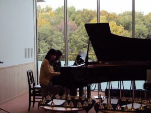 | 今回は、愛弟子3名(りぃちゃん、カスミンちゃん、由夏ちゃん)と娘のゆうみが参加します。 今回は、11月24日に豊田市生涯学習センター石野交流館で開催するコンサートの曲を中心にプログラムしました。 曲目解説 1.みどれみ~優海・・・・オリジナル曲。「みどれみ~」は、このサイトのトップで流れるウチのテーマ曲。 「さあ、今から楽しく音楽を始めましょう♪」ってイメージで作ったので、コンサートの始まりにはちょうどいいかも? と思います。 そのあと、「レインスティック」の効果音に続けて、「優海」に入ります。 「優しい海」について・・・・私は「海」が大好きなので、実は、もう一つ海の曲「冬の海」という曲も作ったのですが、 そちらの曲は、中国の楽器=胡弓の曲のため、あえて「の」を除いて「冬海」にしたため、 それに合わせて「優しい海」もひらがなを除いて「優海」にしました。 それからこの曲名には、もう一つの意味があります。 うちの娘の名前が「優実(ゆうみ)」なので、それもひっかけてあるんです。 優しい子に育つようにとの願いも込めてつけた名前。 だから、この曲を聴いてくださった方々の心にも、優しい気持ちがいっぱいになればいいなぁ・・・・ という思いを込めています。(コメント:Saint Cecilia/みどり) 2.さんぽ・・・・この曲を弾こうと思ったきっかけは、前回ハートフルコンサートに参加したとき、 聴きに来てくれていた方の中にお子さんがいて、先生が即興で「さんぽ」を弾いて、ともて楽しかったことです。 私も、将来子どもができたときに、弾いてあげたいと思い、頑張って練習しました。 子どもから大人まで、聴くだけで楽しくなるこの曲を、私も楽しみながら弾きたいと思います。(コメント:由夏) 3.時代・・・・中島みゆきさんの名曲で、とっても優しい歌詞の大好きな曲です。 最近では、卒業式で歌われたり、音楽の教科書に掲載されたりして親しまれ、 2007年に「~親から子、子から孫へ~親子で歌いつごう 日本の歌百選」にも選ばれています。 ”今は悲しくても、いつか笑って話せるときが来るから今日は今日の風に吹かれましょう…。” 私自身もつらい時この曲を聴いて、歌って、何度も励まされています。 親しい人の中で悲しいことがあって悩んだり、迷ったりしていたら歌ってあげたいと思う曲です。 ピアノに私の気持ちをのせてみなさんに届くように演奏できたらいいなぁと思います。(コメント:りぃ) 4.ふるさと・・・・大正3年(1914年)に音楽教科書「尋常小学唱歌」で発表されました。 少し前の時代まで子供たちの多くは自然の中で遊んでいて、 大人になっても胸の中で鮮やかに蘇る子供時代の思い出を描いて、人々の心を捉えた曲が「ふるさと」です。 一番では、故郷での山や川の思い出、 二番では、「お父さんお母さんは今どうしていますか?友達は元気ですか?」と、離れた人たちへの思い、 三番には、「目的をかなえたら、いつかまたあの美しい故郷へ帰ろう」という願いが込められています。 日本の美しい自然の風景を描きながら演奏したいと思います。(コメント:カスミン) 5~6.大きな栗の木の下で・・・・2007年(平成19年)に日本の歌百選の1曲に選ばれたこの曲は、手遊び歌としてとても有名で、知らない人はまずいないと思います。 今回は、お聴きくださる方々と一緒にミュージックベルの演奏を楽しんでいただいた後、ピアノ連弾による演奏で アレンジの違いも楽しんでいただければと思います。(コメント:Saint Cecilia/みどり) 『大きな栗の木の下で』は子供の頃に踊りながら歌っていた記憶があり、とても楽しい曲です。 この曲は、イギリス民謡をもとにした童謡です。 日本に伝わったのは、太平洋戦争後にGHQの人々が歌っていた曲を聞き伝えで歌い出したことが きっかけと言われています。 秋の季節を感じながら、楽しく演奏したいと思います。(コメント:カスミン) 私は、この曲を聴くとおもわず手が動いて踊りたくなります。 みなさんに3番まで歌って楽しんでもらえるように、アレンジを工夫して連弾します。 ピアノを演奏するので踊れない私の代わりにみなさんに歌って踊って楽しんでもらえたらいいなぁと思います。(コメント:りぃ) 7.ちいさい秋みつけた・・・・この曲を歌ってみると、夏が終わり秋になっていく”ちいさい秋”を 1番から3番までいろんな表現で現されていて、さまざま秋を感じることができます。 一昨年の今頃にも我が家の庭に”ふしぎなキノコ”が自然に生えてきてどんどん増えたらどうしようと思っていましたが 今年はまだ気温が高くてキノコは生えてきていません。でも先日ピアノをお部屋で弾いていたら、ピアノに合わせるように ”リーンリン”と…気になって振り返るとなぜかお部屋の中にスズムシくんが、ちょこんといました。 しばらくそのままにピアノを弾いていたら一緒にスズムシくんも歌ってくれました。 練習が終わってお庭に逃がしてあげました。今年みつけた”ちいさい秋