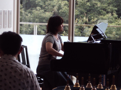 | 曲目解説 1.みどれみ~優海・・・・オリジナル曲。「みどれみ~」は、このサイトのトップで流れるウチのテーマ曲。 「さあ、今から楽しく音楽を始めましょう♪」ってイメージで作ったので、コンサートの始まりにはちょうどいいかも? と思います。 そのあと、「レインスティック」の効果音に続けて、「優海」に入ります。 「優しい海」・・・・私は「海」が大好きなので、この曲を作った後に、もう一つ「冬の海」という曲も作ったのですが、 そちらの曲は、中国の楽器=胡弓をメインにしたため、あえて「の」を除いて「冬海」にしました。 それに合わせて「優しい海」もひらがなを除いて「優海」にしました。 また、この曲名には、もう一つの意味があります。 うちの娘の名前が「優実(ゆうみ)」で、優しい子に育つようにとの願いを込めてつけました。 だから、この曲を聴いてくださった方々の心にも、優しい気持ちがいっぱいになればいいなぁ・・・・ という思いも込めています。(コメント:Saint Cecilia/みどり) 2.スマイルズ アンド ティアーズ ・・・・今から約20年前の1994年に、スーパーファミコン用ソフトとして発売された 「MOTHER2 ギーグの逆襲」というゲームのエンディングテーマです。 MOTHER2はゲームデザインを糸井重里が担当し、「音楽を大事にする」というコンセプトで作られたゲームです。 CMではSMAPの木村拓哉が出演し、「まざつー」と延々繰り返す謎めいたコーラスが話題にもなりました。 キャッチコピーは「おとなも こどもも おねーさんも」。 当時、私はこどもでしたが、その頃の気持ちを思い出しながら演奏したいと思います。(コメント:AKI) 3.Oriental Wind・・・・久石譲さんが作曲されてサントリーの緑茶「伊右衛門」のCMで使われている曲です。 CMの内容によっていろんな楽器編成で、いろんな編曲のものがあります。 CMという短い時間の中で使われているのがもったいないような曲です。 ひとつの曲としてゆっくりみなさんに聴いていただけたらいいなぁと思います。 あったかい緑茶をいただいた時のほっこりした気持ちをイメージして演奏したいです。(コメント:りぃ) 4.I am・・・・この曲を聞くと、ニューヨークっぽさを感じるか(私はさらにその朝の風景を感じます)、 古館伊知郎氏の顔を思い浮かべるかの二択になると思います。ほとんどが後者でしょうが・・・。 前置きが長くなりましたが、この曲はテレビ朝日「報道ステーション」オープニングテーマ(2011年4月~)でおなじみの曲です。 長いこと報道ステーションを見ていたのですが、気づいたら、この曲の虜になってしまい、 さらには楽譜が発売され(耳コピですが)、思わず買って練習していました。 とてもクールな曲なので、ぜひその雰囲気を楽しんでいただければと思います。(コメント:ミッキー) 5.かたつむり・・・・この曲は、1911年(明治44年)に「尋常小学唱歌」上に掲載された唱歌の一つで、 今でも、歌い継がれている親しみある歌です。 お聴きくださるみなさんも一緒にミュージックベルを演奏しながら歌える季節の歌ということで選曲しました。(コメント:Saint Cecilia/みどり) 6.たなばたさま・・・・この曲は、昭和16年3月に文部省発行の『うたのほん 下』に掲載された唱歌です。 中国から始まった日本の伝統行事「七夕祭り」では、短冊に願い事を書き葉竹に飾る行事となりました。 短冊などを笹に飾る風習は江戸時代から始まったもので、日本以外では見られないそうです。 「たなばたさま」の歌詞にある「五色(ごしき)の短冊」の五色(ごしき)とは、中国の五行説にあてはまる五色で、 緑・紅・黄・白・黒のことだそうです。 そして、中国では短冊ではなく五色の糸をつるし、芸事の上達を願うそうです。 今回は、お聴きくださるみなさんも一緒にミュージックベルを演奏しながら歌える季節の歌ということで選曲しました。 (コメント:Saint Cecilia/みどり) 7.たなばたさま・・・・日本には季節ごとに郷愁を感じさせる素晴らしい歌がたくさんあると思います。 星に思いをはせ、短冊に願いを託し、笹飾りに結ぶ。七夕まつりって夢があっていいですね。 今回もとても素敵なアレンジの曲です。 カスミンちゃんときれいな天の川を思い浮かべ心をあわせ演奏したいです。(コメント:りぃ) 昭和16年3月、文部省発行の「うたのほん下」(国民学校2年生用)に掲載されました。 いつも慣れ親しんでいる歌ですが、改めて歌詞をみると、 「五色(ごしき)の短冊」の五色とは、五種類の色(赤、白、黒、黄、青)をいい、、 「金銀砂子(すなご)」の砂子は、蒔絵(まきえ)やふすまに使われている、金箔や銀箔などを細かくした粉だそうです。 この曲を聴くと、小学校の頃の思い出が蘇ってきて、とても懐かしい気持ちになりました。 大きな笹に短冊を飾り、七夕当日には持ち帰った笹をベランダにくくりつけて楽しんだり、 織姫と彦星が年に1度しか会えないと信じて、天気を心配したこともありました。 願いを込めて、皆様が元気