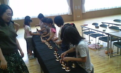 | 前半: | 1.基本の鳴らし方・・・・一音打ち・ロングトーン・トレモロ・音の止め方 2.和音で楽しもう♪「森のくまさん」 3.ベルの音の順番の説明と演習 |